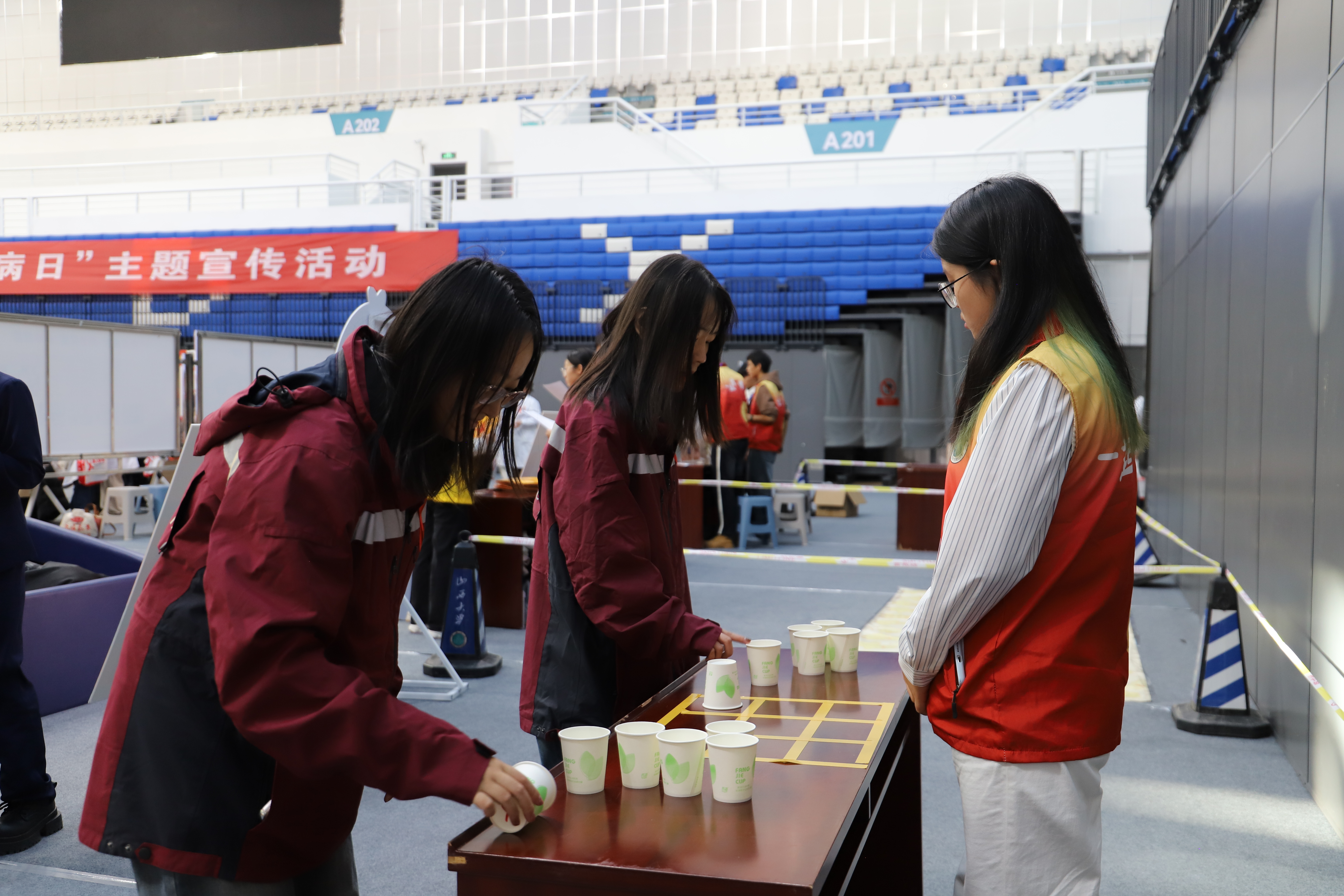 随后,由我校举办的“世界艾滋病日”主题宣传活动中,“防艾鸭”再次出击!艾趣摊位小游戏创意十足,同学们在互动中集满防艾知识“勋章”,加深对艾滋病认识;现场展出的各学院同学的创意防艾作品,书法、绘画、手工,展现了青年学生的创造力,体现出他们对艾滋病的深切关注和深刻认知。志愿者们热情洋溢,认真维持现场秩序,带领大家参与游戏活动。