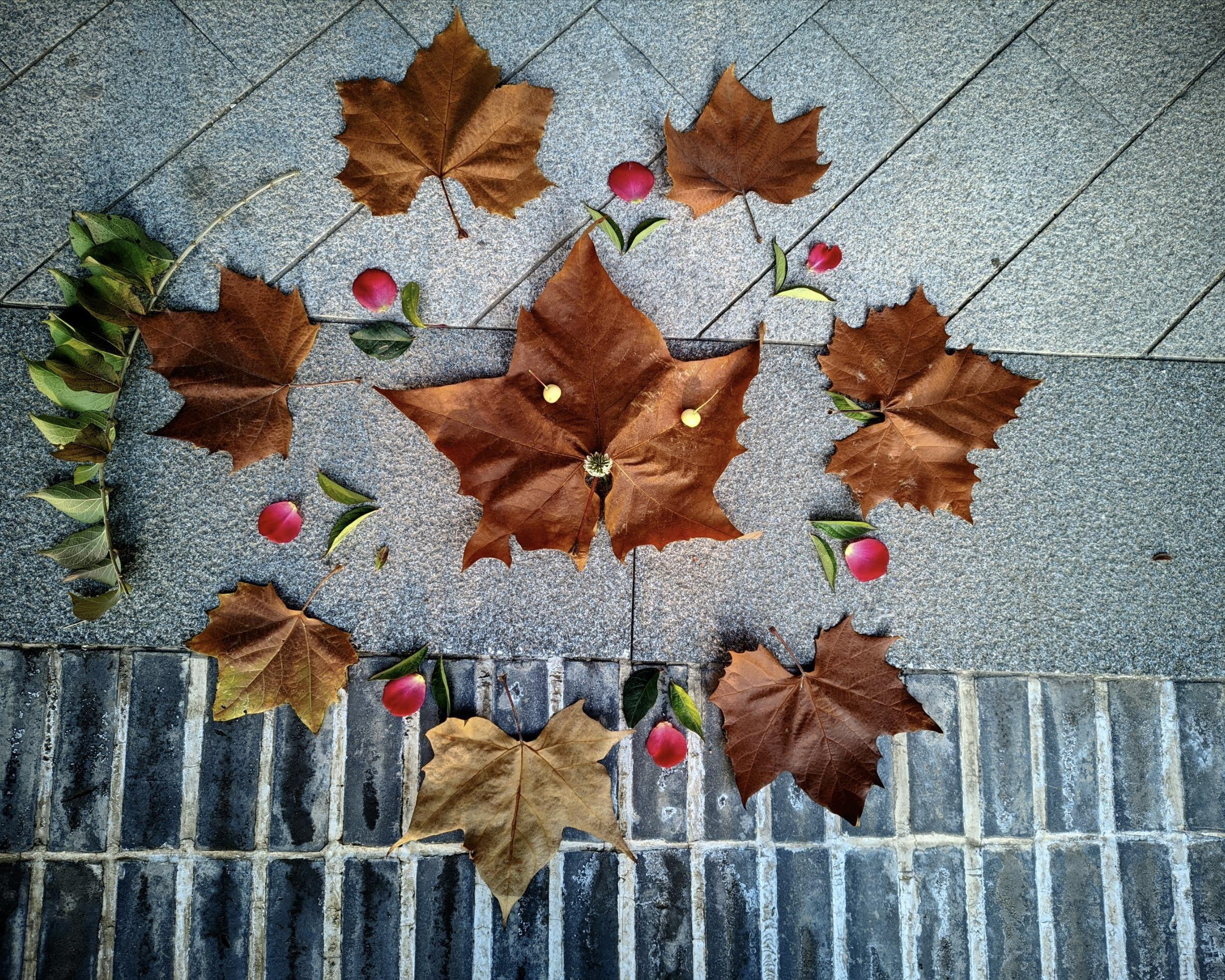 随后,学员们投入到落叶地画的创作中。他们精心挑选树叶,发挥无限创意,将一片片落叶巧妙地拼接成一幅幅独一无二的画作,用曼陀罗疗愈的形式展现着他们对自然之美的独特理解。